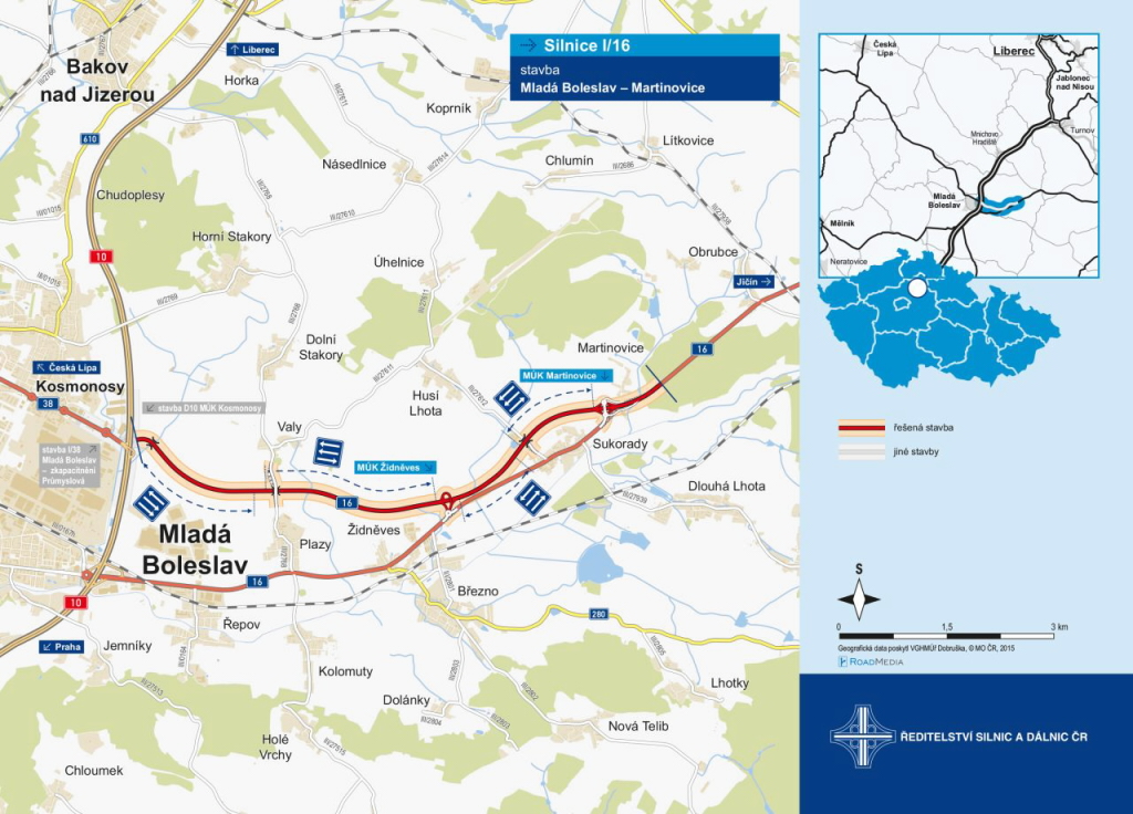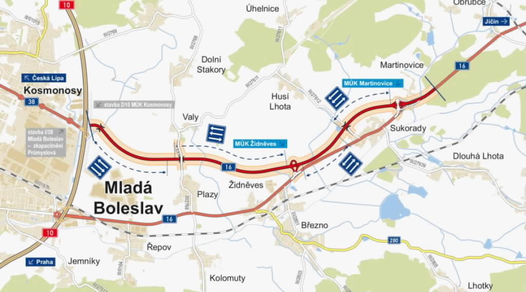 O zahájení soutěže informoval na sociální síti X generální ředitel ŘSD Radek Mátl. Přeložka silnice I/16 povede z aktuálně přestavované křižovatky Kosmonosy na D10 až po Martinovice. Silnice dlouhá 8,2 kilometru je jednou z komunikací, k jejíž stavbě se zavázal stát před lety v memorandu s automobilkou Škoda Auto. Uleví především přetížené Jičínské ulici na okraji Mladé Boleslavi i Židněvsi a Sukoradům, kde nyní tranzitní doprava projíždí přímo středem obce.