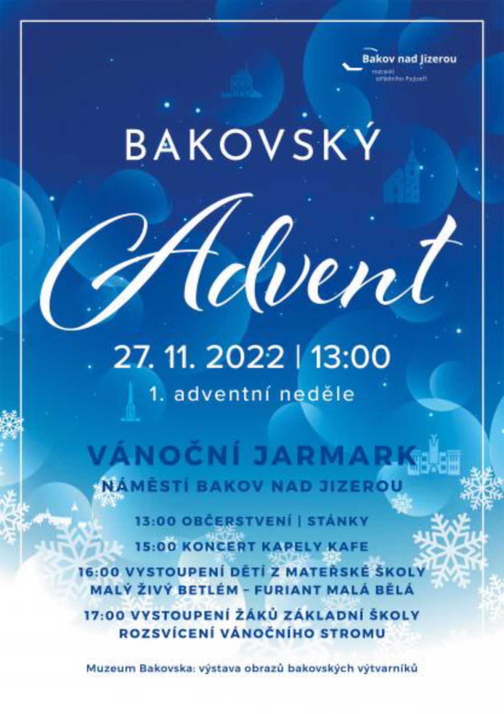 První adventní neděli 27. listopadu vypukne ve 13 hodin v Bakově nad Jizerou na Mírovém náměstí vánoční jarmark.