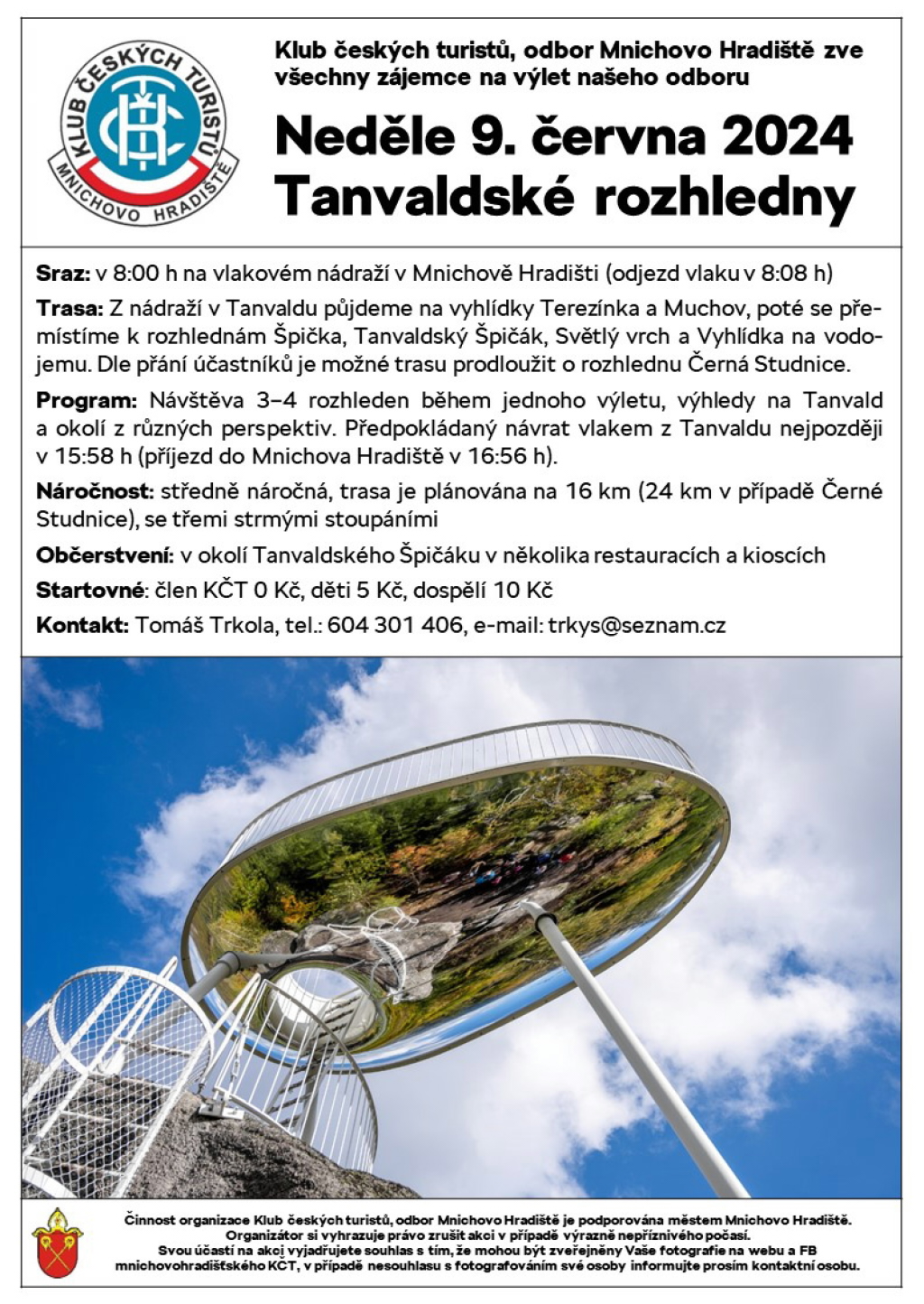 V neděle 9. června zve Tomáš Trkola na další cestu za rozhlednami, tentokrát těmi tanvaldskými. Připojte se k tomuto výletu, kde nebude o stoupání korunované nádhernými výhledy nouze. Sraz v 8 hodin na mnichovohradišťském nádraží, společný odjezd vlakem v 8.08.