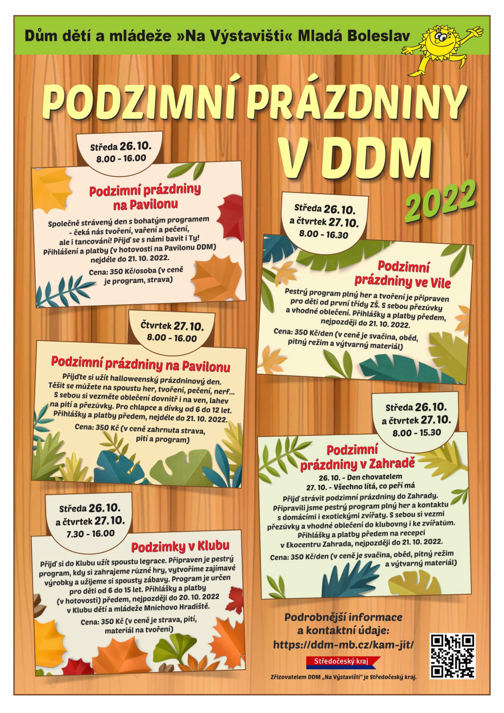 A pokud si nevyberete z programu v Mnichově Hradišti, k dispozici je i bohatá nabídka Domu dětí a Mládeže v Mladé Boleslavi: