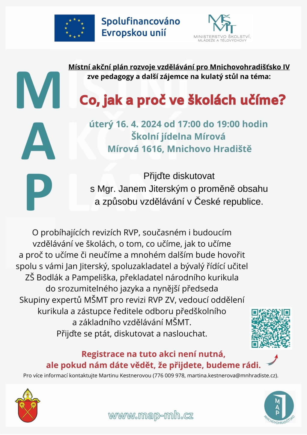 Přijďte diskutovat 16. dubna v 17 hodin do školní jídelny (Mírová 1616, Mnichovo Hradiště) s Janem Jiterským o proměně obsahu a způsobu vzdělávání v České republice.