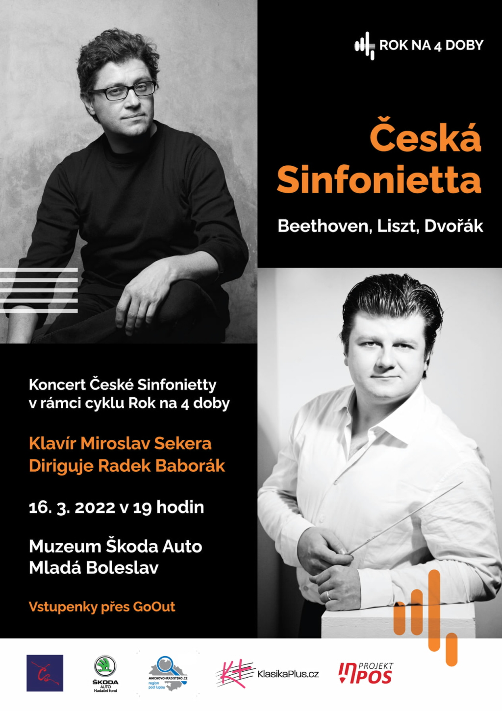 Nezisková organizace 4art, z. s., pořádá druhý večer z koncertního cyklu Rok na 4 doby. Tentokrát se představí symfonický orchestr Česká sinfonietta s šéfdirigentem Radkem Baborákem a hostujícím sólistou na klavír, Miroslavem Sekerou.
