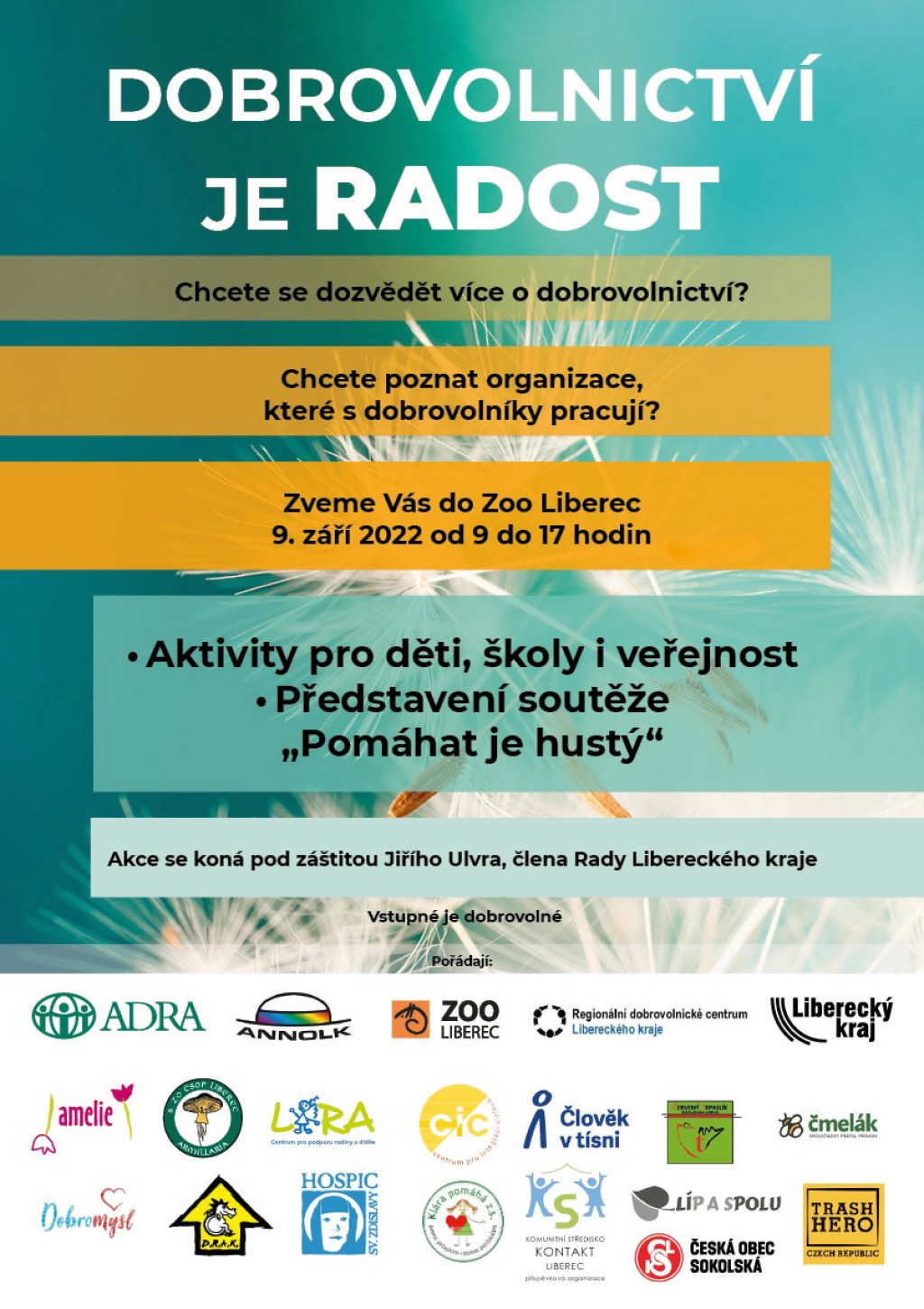 V areálu zoo se přitom akce nekoná náhodou. „Zoologická zahrada poskytuje svůj prostor pro prezentaci dobrovolnických subjektů zejména proto, že dobrovolnictví je fenomén, který si – obzvlášť po minulém těžším období – zaslouží podporu a zviditelnění. Slibujeme si ale od této akce také dobrovolnický potenciál pro naši vlastní potřebu. Neřešíme tak závažná témata a životní situace, jako ostatní partneři akce, ale i Zoo Liberec má o práci dobrovolníků zájem a sama s nimi dlouhodobě pracuje. Naši dobrovolníci bývají zapojováni do výroby tzv. enrichmentu – hraček pro zvířata, ale také pomáhají například při vzdělávacích akcích pro veřejnost. Práce všech dobrovolníků si hluboce ceníme,“ vysvětluje mluvčí Zoo Liberec Barbara Tesařová.