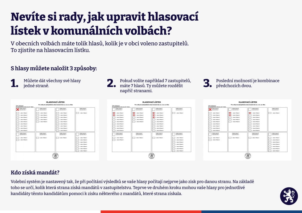Hlasovací lístky budou doručeny voličům na adresu místa trvalého pobytu nejpozději 20. září, případně budou k dispozici ve všech volebních místnostech.