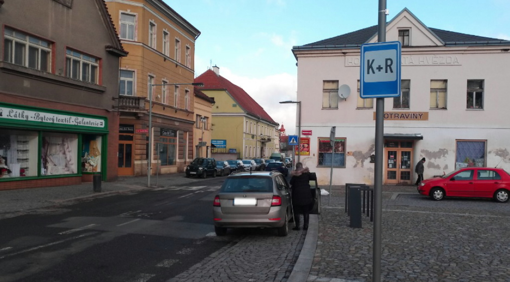 Značka K+R existuje ve vyhlášce od roku 2010 a je určena pro případy, kdy řidič přepravuje automobilem spolujezdce, kterého u daného místa vyloží a následně pokračuje v jízdě dál. Foto: Markéta Červinková