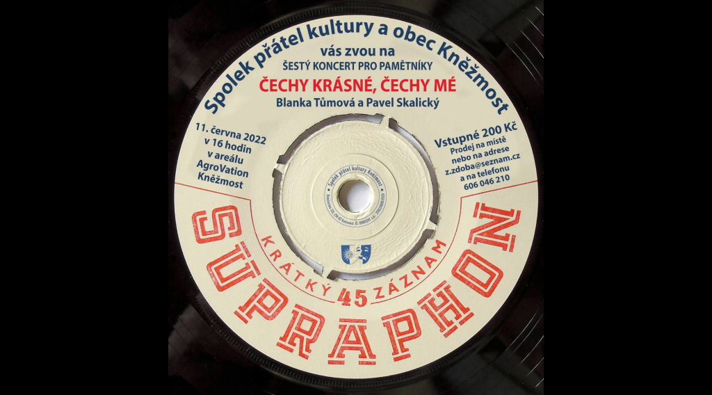 Spolek přátel kultury a obec Kněžmost vás zvou na šestý koncert z pravidelného cyklu pro pamětníky. V programu Čechy krásné, Čechy mé účinkují Blanka Tůmová a Pavel Skalický.