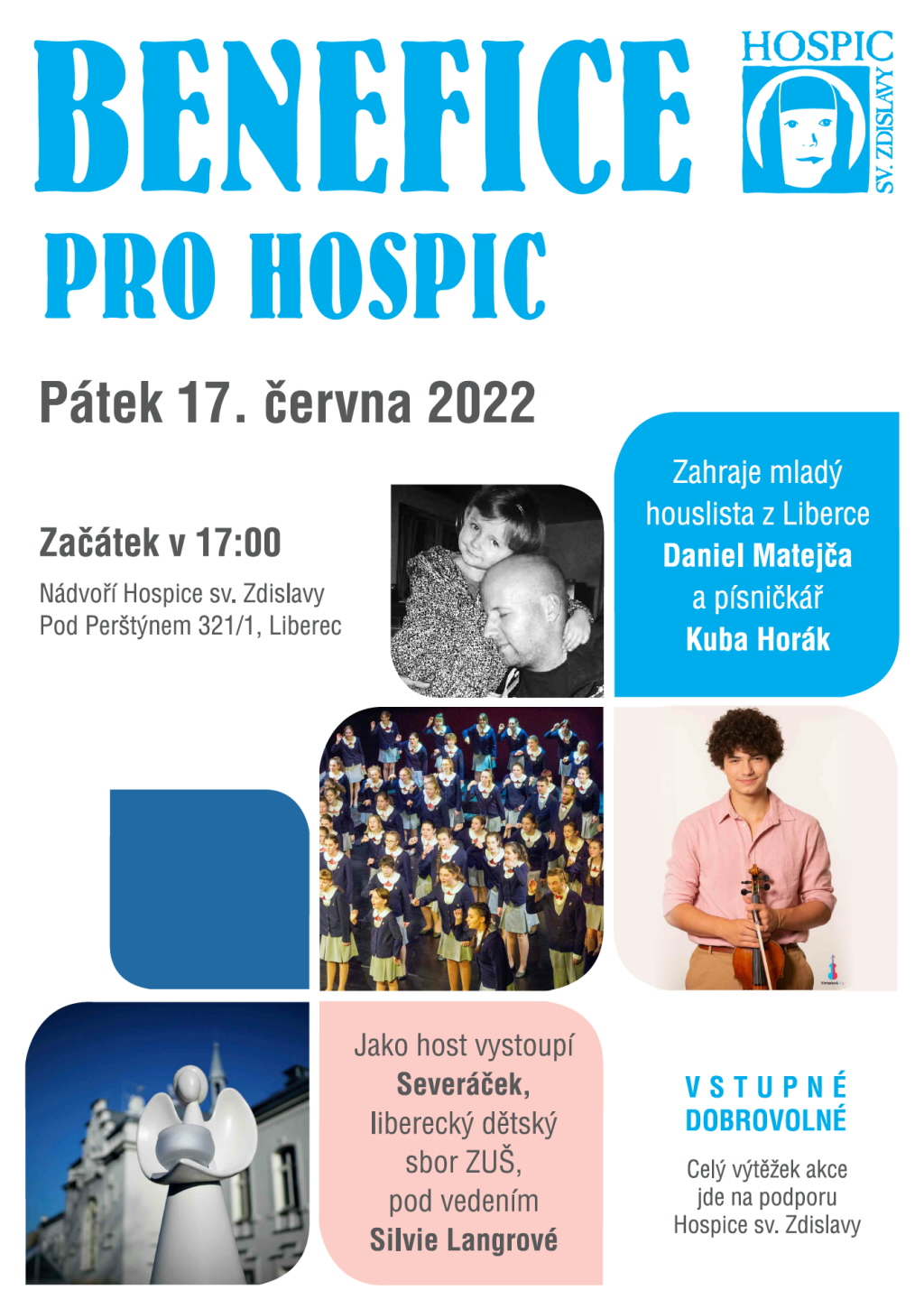 Liberecký Hospic sv. Zdislavy zve na Benefici pro hospic, která se uskuteční v pátek 17. června 2022 v 17.00 na nádvoří hospice (Pod Perštýnem 321/1, Liberec).