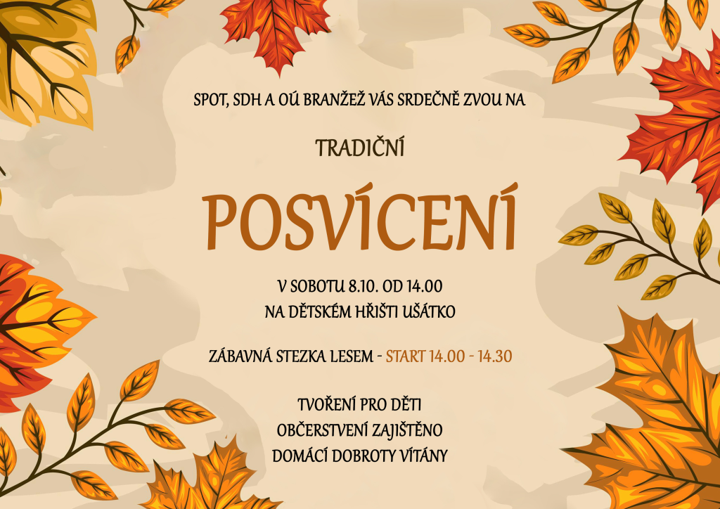 SPOT, SDH a OÚ Branžež srdečně zvou na tradiční posvícení v sobotu 8. října od 14 hodin na dětském hřišti Ušátko.
