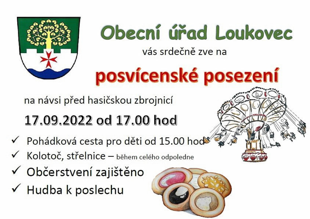 Obec Loukovec zve v sobotu 17. září na posvícenské posezení na návsi před hasičskou zbrojnicí.