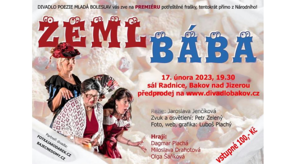 Představení Zemlbába v podání mladoboleslavského Divadla Poezie se odehraje v pátek 17. února od 19.30 v sále Radnice v Bakově nad Jizerou.