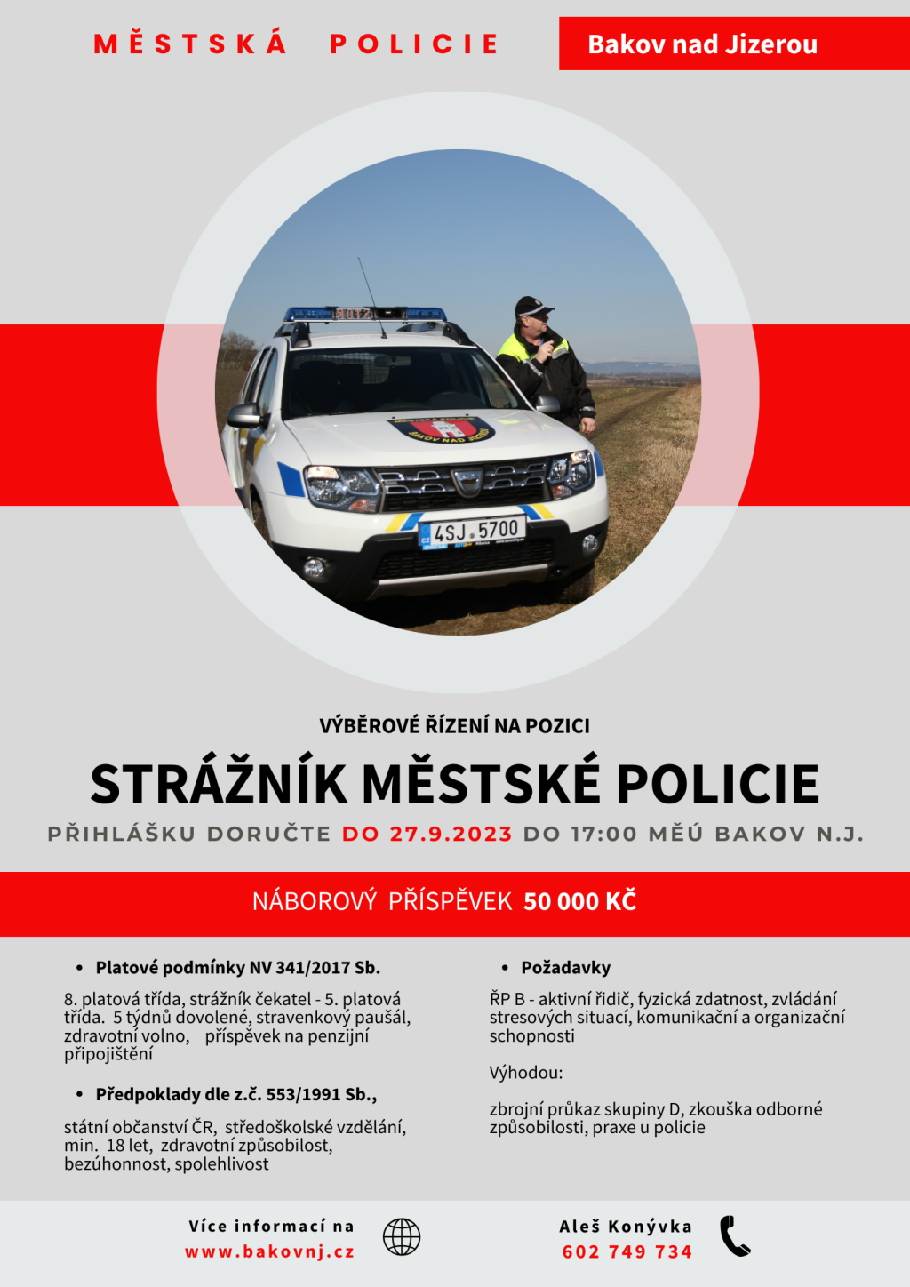 Městská policie shání do svých řad strážníka a rovněž vypisuje výběrové řízení na ředitele.