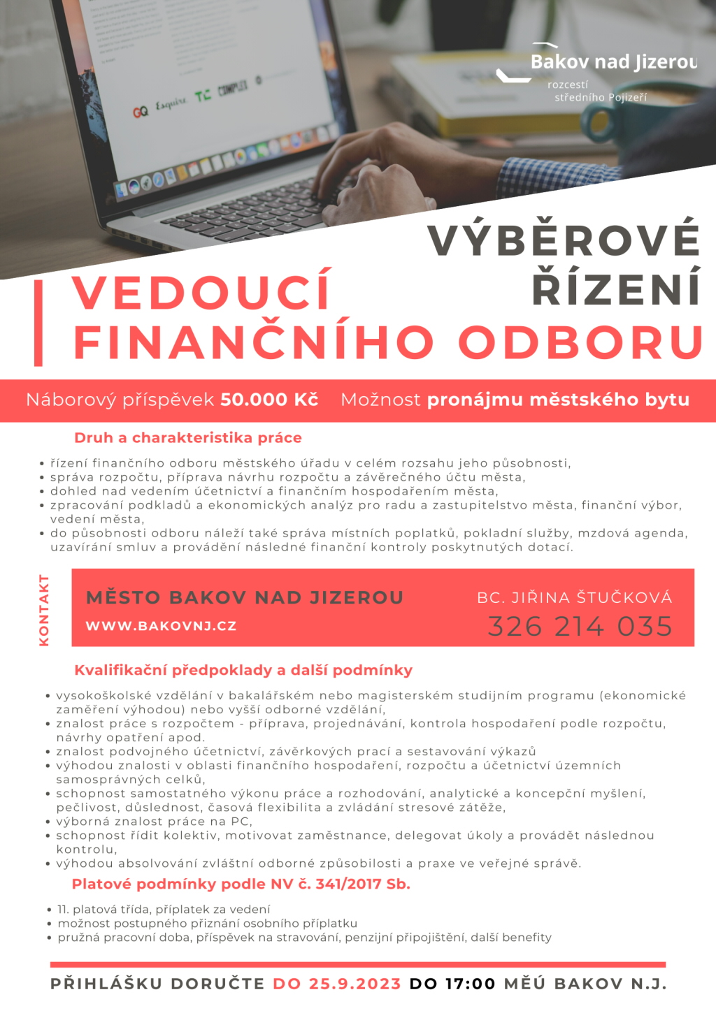 Město Bakov nad Jizerou aktuálně nabízí několik volných pracovních pozic.