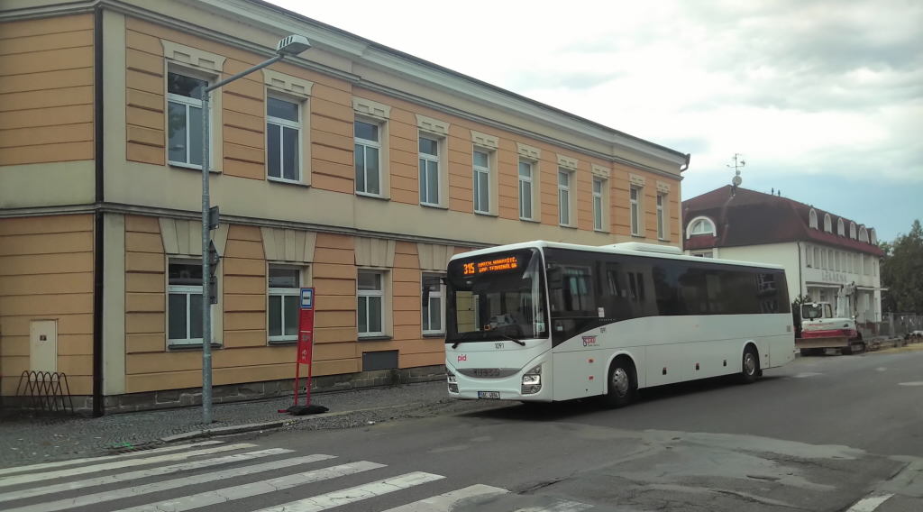 Zastávka je dočasně posunuta o několik metrů. Autobusy zastavují na úrovni budovy polikliniky.