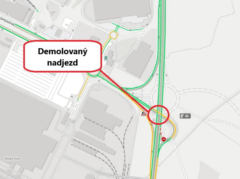Demolice je součástí proměny celé křižovatky, kterou Ředitelství silnic a dálnic (ŘSD) přestavuje na turbookružní s průměrem vnějšího prstence 140 metrů. Po demolovaném nadjezdu dosud vede doprava. Během demolice a po ní už bude doprava převedena na polovinu nové stavby, respektive na část prstence nové turbookružní křižovatky blíže směru Turnov.