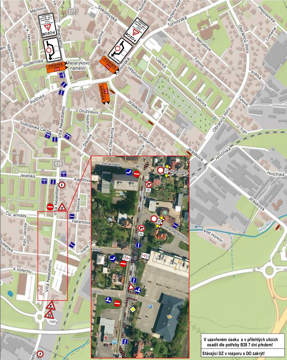 V Mnichově Hradišti je od středy 15. října na nezbytně dlouhou dobu opět jednosměrná ulice Víta Nejedlého, a to v úseku od čerpací stanice Orlen po křižovatku s ulicemi Harantova a Čsl. armády. Omezení mohou trvat až do 15. listopadu. Během této doby bude úsek průjezdný dle potřeb stavby vždy jedním pruhem směrem na náměstí. Důvodem je oprava obrusné vrstvy asfaltu. Asfaltový koberec v prvním zrevitalizovaném úseku ulice Víta Nejedlého byl pokládán vloni v prosinci. Teplotní podmínky byly hraniční, zároveň však bylo třeba silnici před zimní přestávkou prací uvést do takového stavu, aby byla sjízdná a bezpečná. Výsledný povrch se však vyznačoval nedostatky, který KSÚS Středočeského kraje, jenž je investorem rekonstrukce vozovky, reklamovala. Revitalizace ulice Víta Nejedlého pokračuje dle harmonogramu, vedle zmiňované výměny povrchu v 1. etapě se v horizontu dvou měsíců očekává dokončení aktuální poslední etapy mezi křižovatkou u bývalé Komerční banky a náměstím. Během podzimu proběhne rovněž část výsadby, která bude dokončena na jaře. Zjednosměrnění ulice Víta Nejedlého se dotkne i autobusové dopravy. Od středy 15. října se dočasně ruší zastávka Mnichovo Hradiště, Dukelská ve směru na Bakov nad Jizerou. Zastávka ve směru na dopravní terminál se přesouvá asi o 100 metrů po směru jízdy za ulici Harantova.