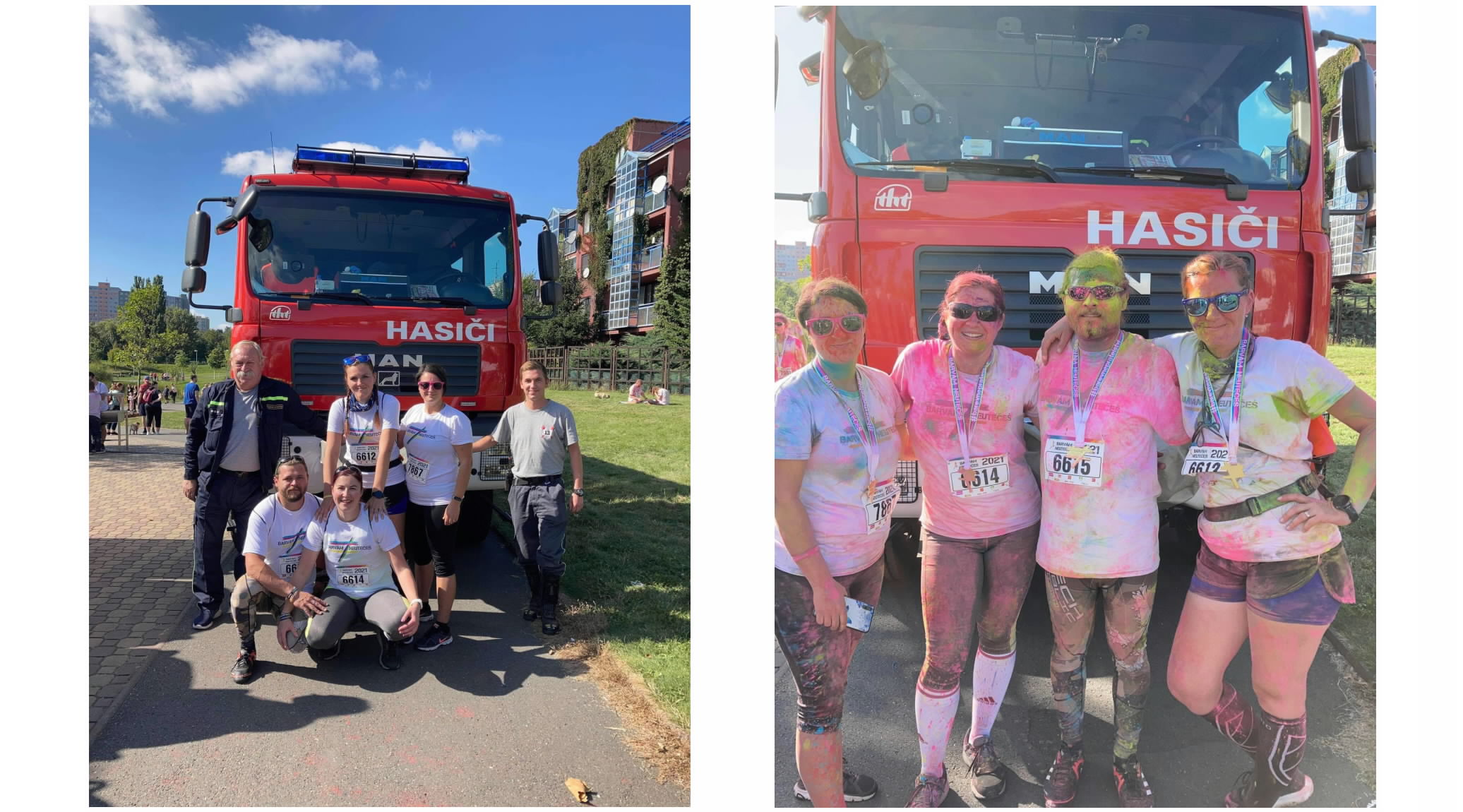 V tento den se konaly dva výběhy, dopoledne v 11 hodin a odpoledne od 14 hodin. A právě ve 14 hodin na startovní čáru vstoupili 4 zástupci našeho sboru, kteří se aktivně věnují nejenom „požárnímu sportu“, ale i běhu. Vyměřená 5 km dlouhá trasa obsahovala pět stanovišť, kde každý běžec schytal pěknou dávku barvy, a obvykle toho po proběhnutí stanoviště moc neviděl. Trasa byla zrádná – byla plná stoupání a ani dva prudké kopce dolů, v kterých bylo ukryté modré a červené stanoviště, nebyly úplně snadnou výzvou. K perfektnímu zážitku přispělo povedené počasí a dobrá organizace akce.
