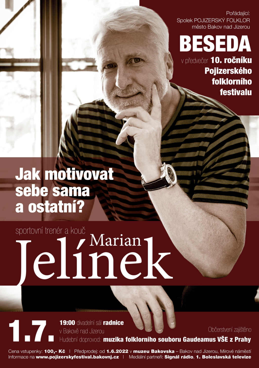 Letošní program bude jako vždy zajímavý. V pátek 1. července se bude konat v bakovském divadle od 19 hodin již tradiční beseda s hostem. Tentokráte přijal pozvání známý trenér a kouč Marian Jelínek. O hudební doprovod se postará lidová muzika folklorního souboru Gaudeamus VŠE z Prahy. Počet míst je omezen, a proto je dobré si zakoupit lístky včas. Předprodej začal 1. června v bakovské knihovně a cena je 100 Kč.