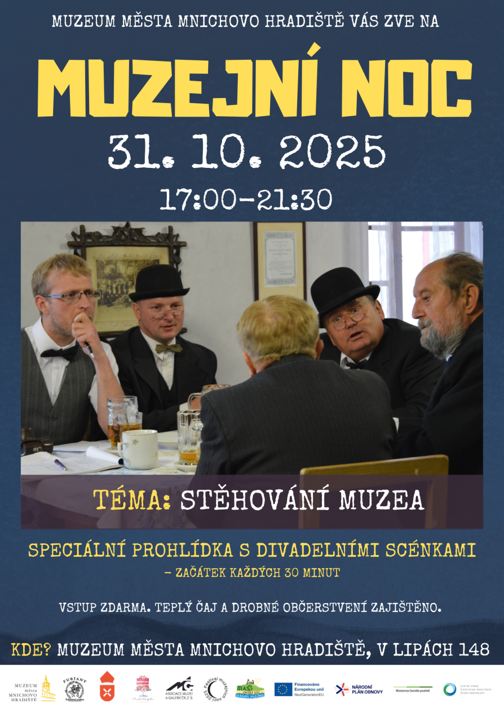 Na vaši účast se těší současní i bývalí pracovníci muzea, soubor Furiant a herci z Divadýlka na dlani. Přijďte si společně zavzpomínat, pobavit se a užít si i poslední den výstavy Mnichovo Hradiště inspirující – zřejmě zcela poslední výstavy v těchto prostorách.