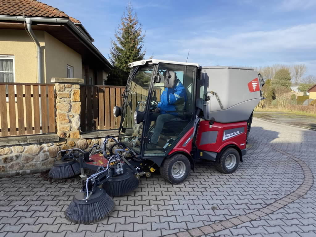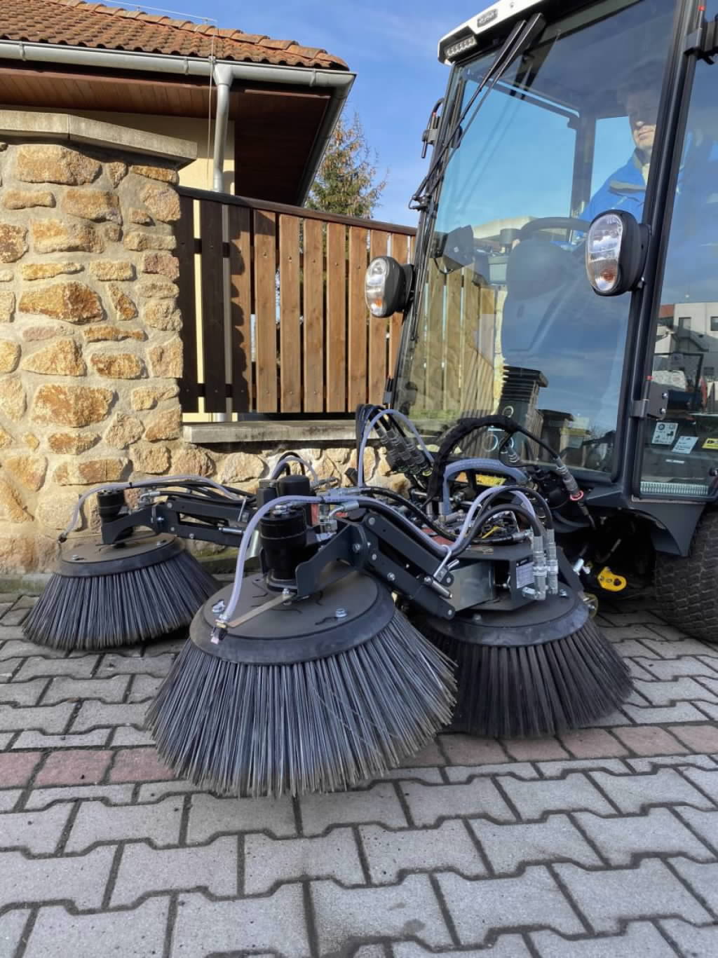 Lze na něj připojit sněhový pluh s korbičkou pro posyp, sekačku na trávu, zametač s odsáváním a systém recirkulace vody pro efektivnější sběr nečistot a čištění sací hubice. Stroj disponuje i integrovanou vysokotlakou myčkou 120 bar.