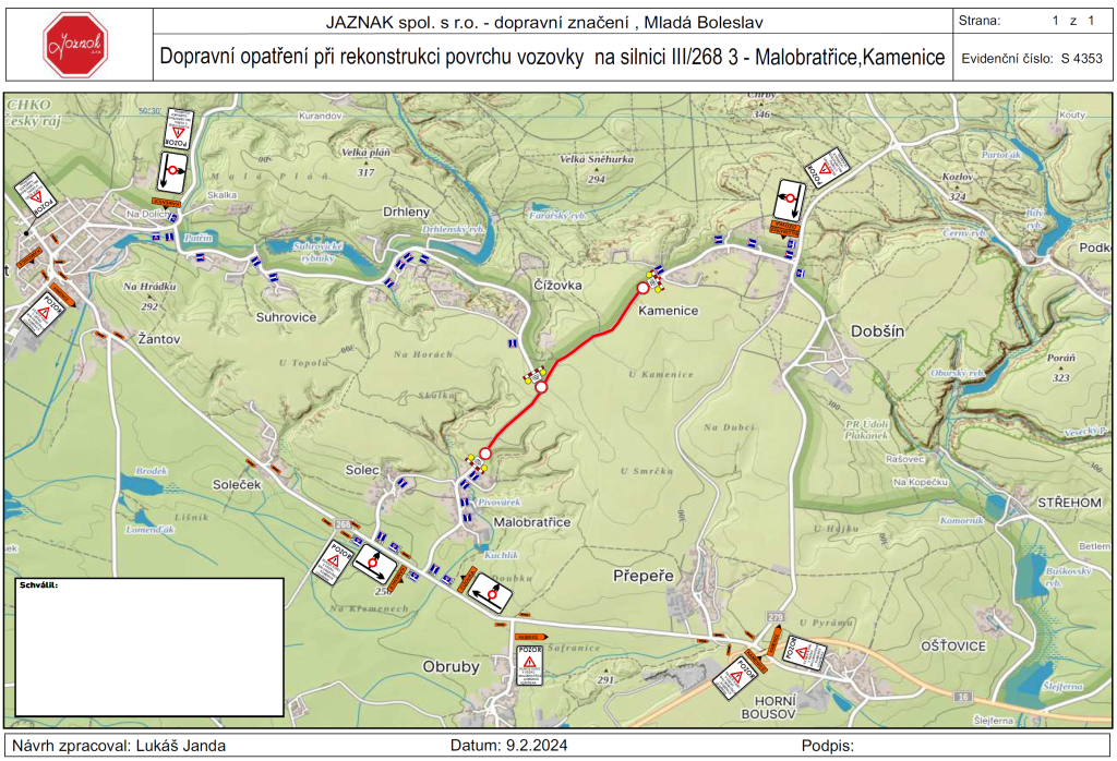 Uzavírka silnice III/2683 mezi obcemi Malobratřice (konec obce) a Kamenice (začátek obce) z důvodu frézování a pokládky asfaltu mezi obcemi Malobratřice a Kamenice je prodloužena do 22. května.