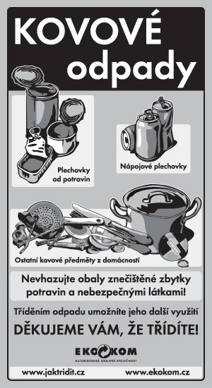 Město Bakov nad Jizerou posílilo některá stanoviště s kontejnery na tříděný odpad o nové kontejnery na třídění a sběr kovů. Nově bylo ve městě a jeho místních částech umístěno celkem 12 nových kontejnerů na kovy o objemu 1100 litrů. Kontejnery jsou označeny šedou nálepkou na kovy.