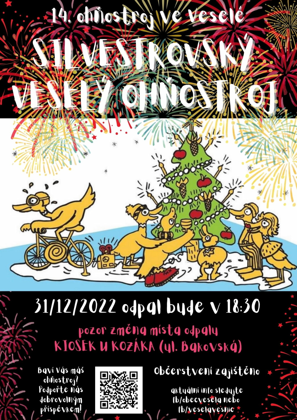Milovníci ohňostrojů se budou moci pokochat tradičně na Silvestra ve Veselé od 18.30 hodin v Kiosku U Kozáka.