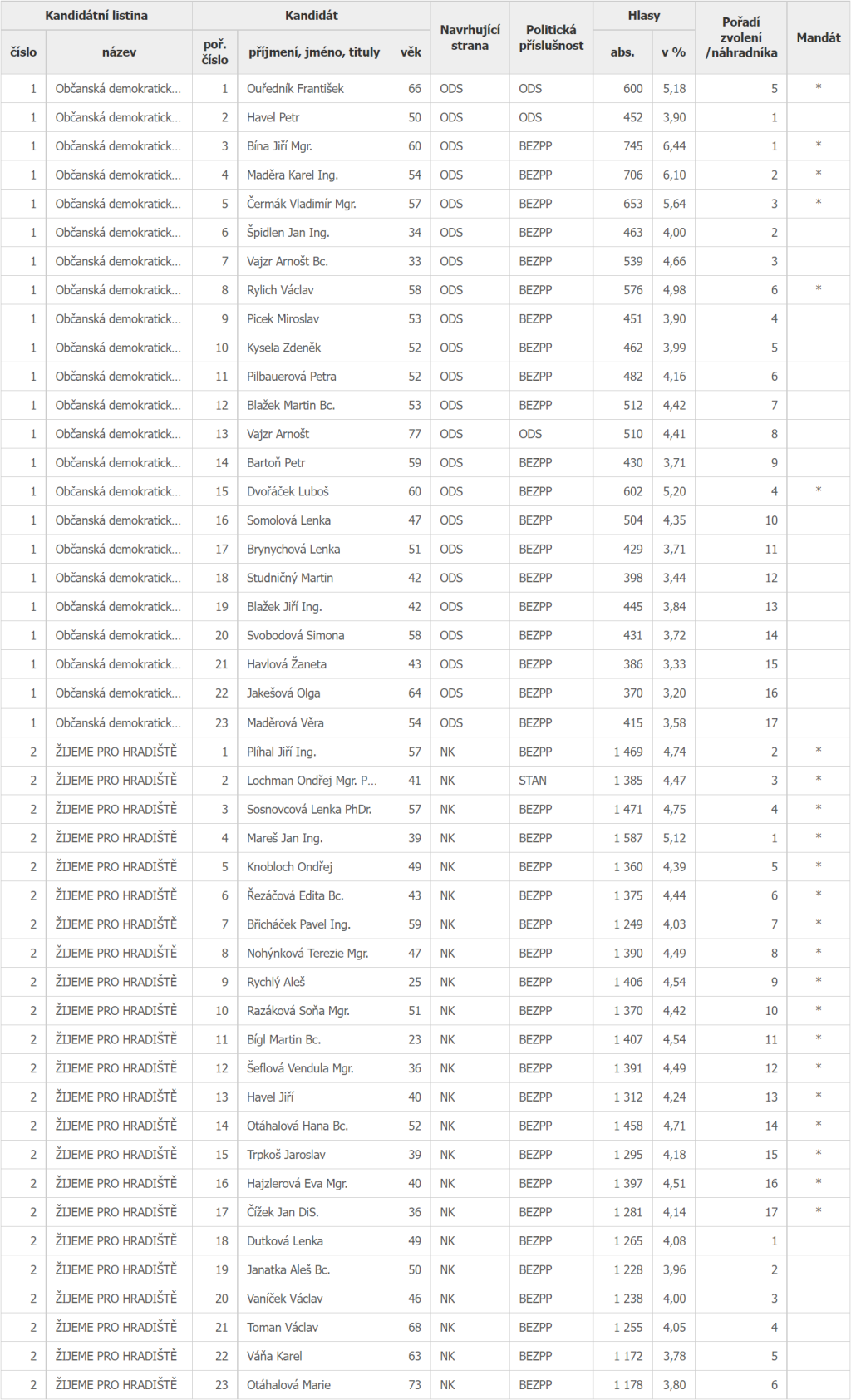 Na kandidátce ŽpH přeskočil současný místostarosta Jan Mareš ze 4. na 1. místo, jinak zůstalo pořadí kandidátů zachováno.
