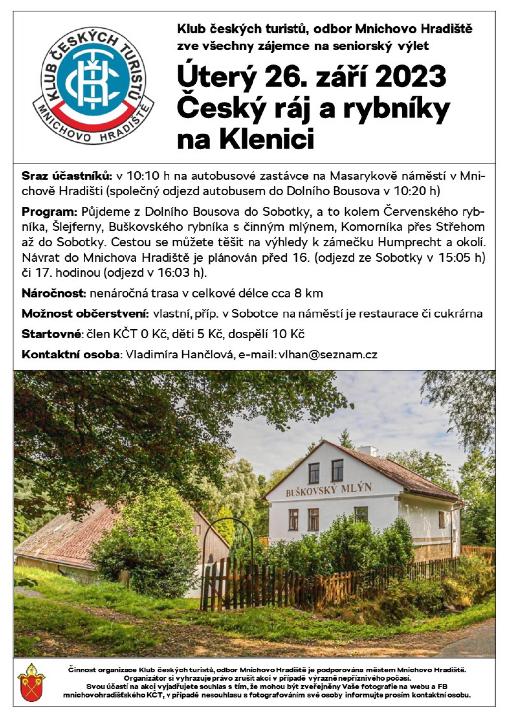Zářijový program mnichovohradišťských turistů nabídne nenáročné výlety vhodné pro seniory
